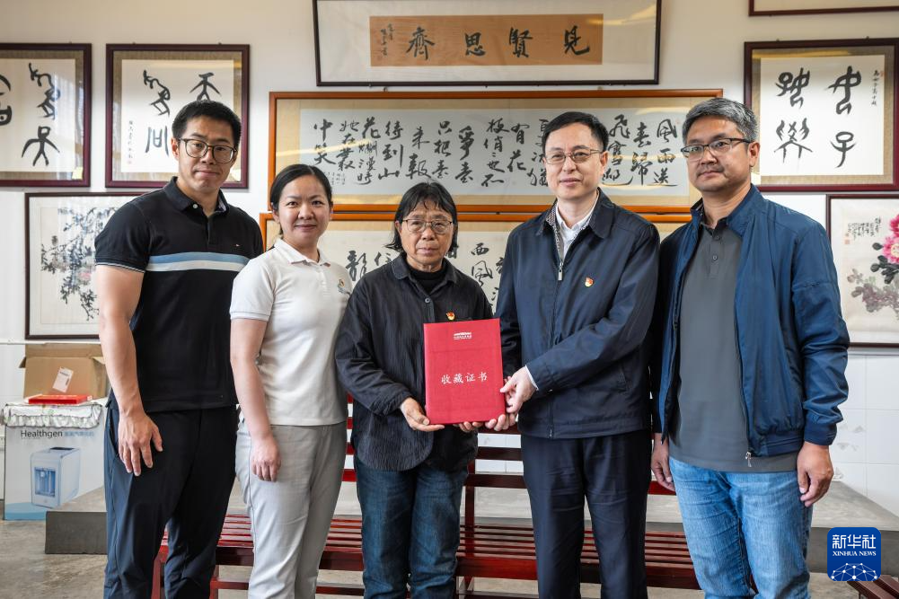 5月27日,张桂梅(中)收到国家博物馆颁发的收藏证书后留影。新华社记者 胡超 摄