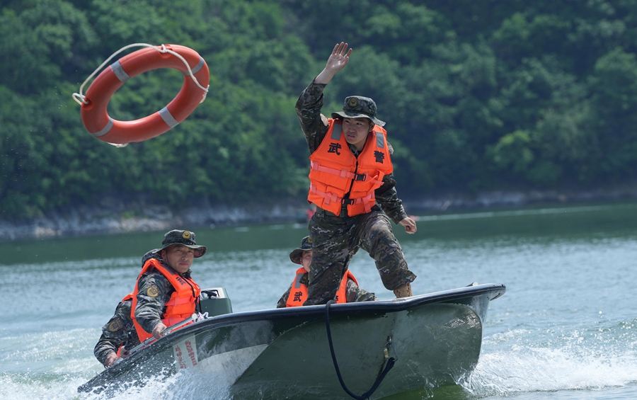 武警浙江总队湖州支队紧盯汛期任务特点,在陌生水域开展以实战化任务为背景的冲锋舟操作手集训。此次集训采取“理论授课+实操训练+考核验收”的模式,重点围绕舟艇操作、编队行进、水上搜救等十余个课目开展强化训练,着力提升官兵遂行水上多样化任务能力。(帅金雨、沈昀玥、黄杰彪)