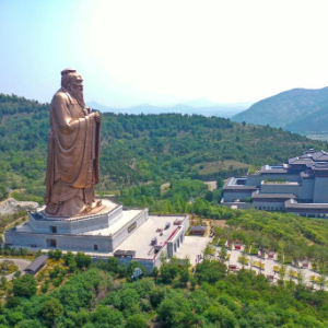 人们在尼山山腰竖立了一尊72米高的孔子雕像,以钢为骨,以铜为衣。雕像面对一个美丽的水库,水库的名字已改为“孔子湖”。游客们选择雕像作为拍摄集体照的最佳景点。