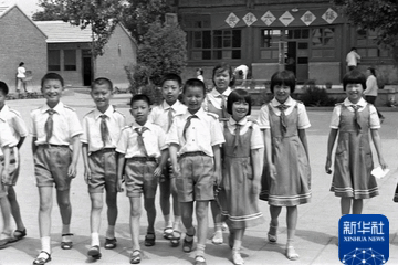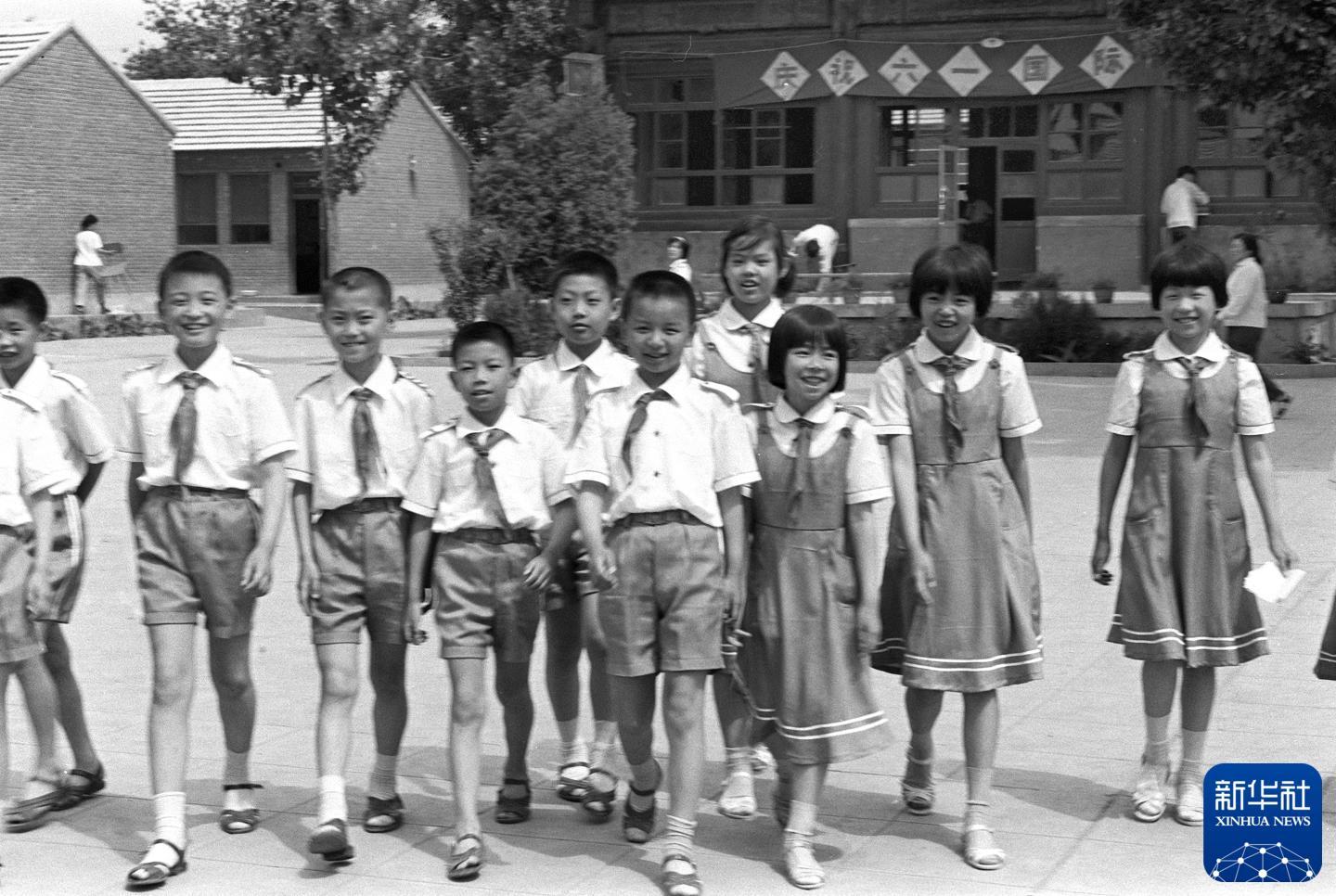 1983年六一儿童节前夕,北京市少先队员高兴地穿上了新队服。新华社记者 袁汝逊 摄