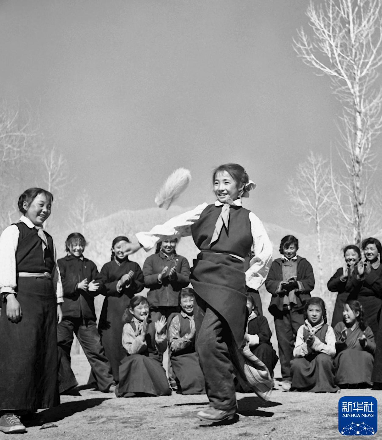 1960年5月,藏族小姑娘在踢毽子。新华社发(罗伟 摄)