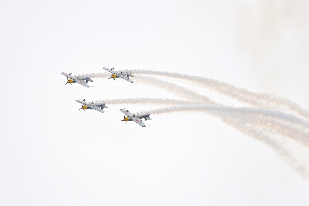 2023年9月28日,特技飞行表演队在2023太原国际通用航空博览会上表演。新华社记者杨晨光 摄