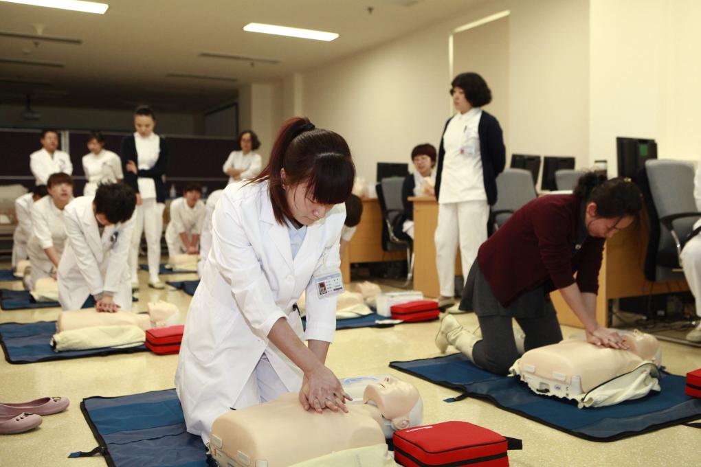 泰达国际心血管病医院医护人员正在接受专业心肺复苏培训。(图片来源:泰达国际心血管病医院)