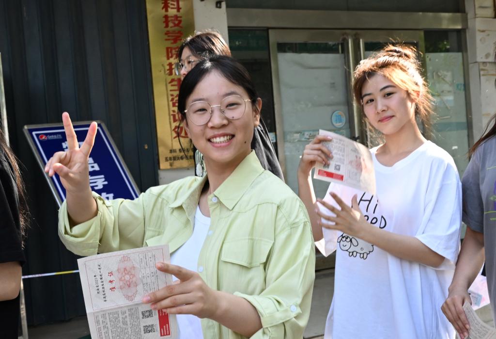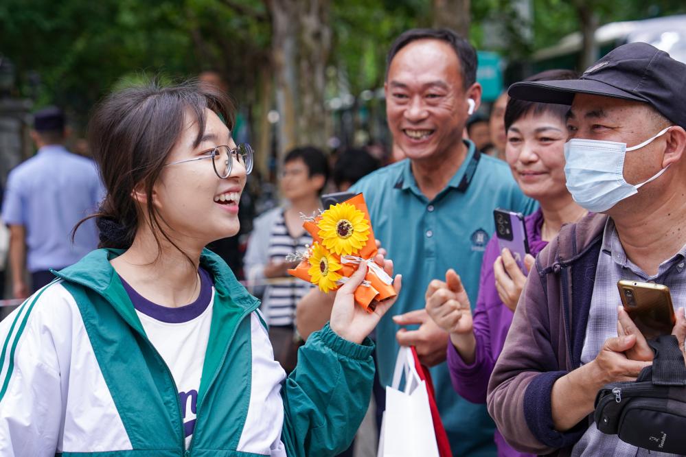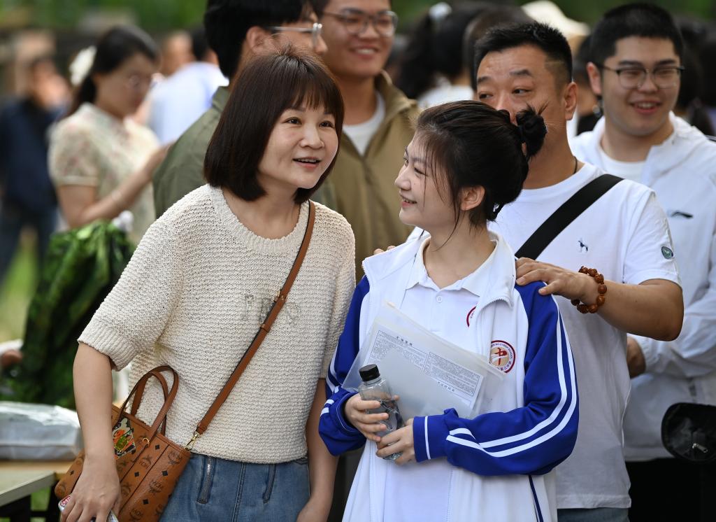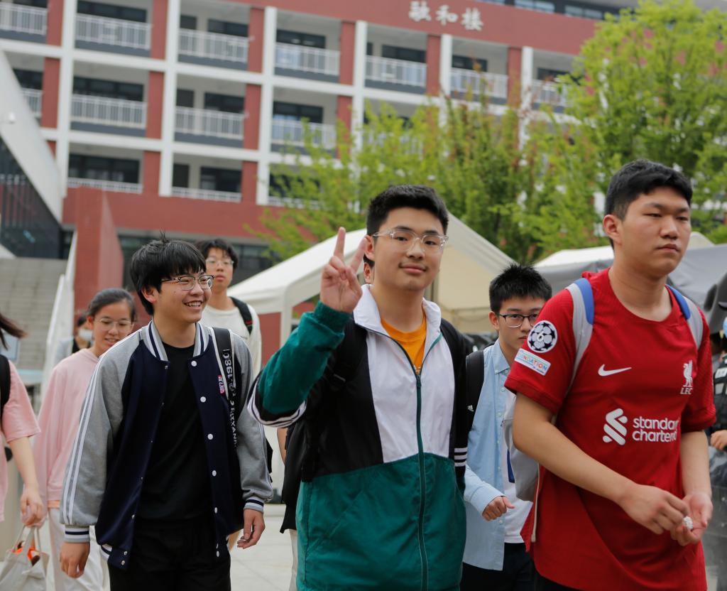 在江苏省南京市建邺区中华中学考点,结束首场考试的考生走出考点(2024年6月7日摄)。新华社记者 李博 摄