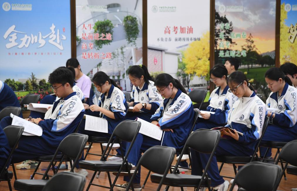 在中国农业大学附属中学考点,考生在休息区等待考试(2024年6月7日摄)。新华社记者 任超 摄