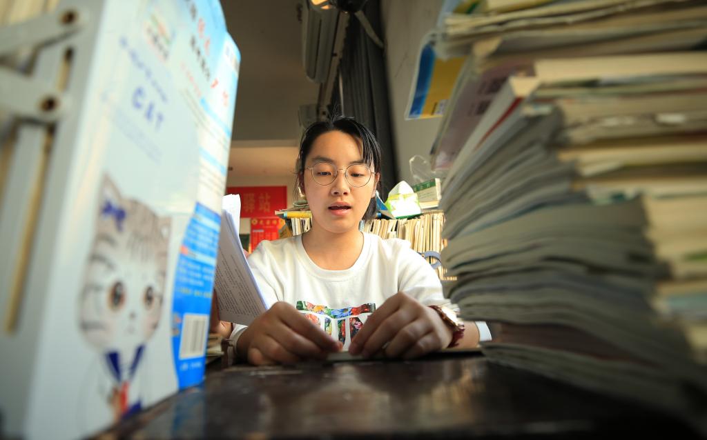 湖南省衡阳县第一中学的高三学生在教室早自习,认真复习备考(2019年6月4日摄)。新华社发(曹正平 摄)