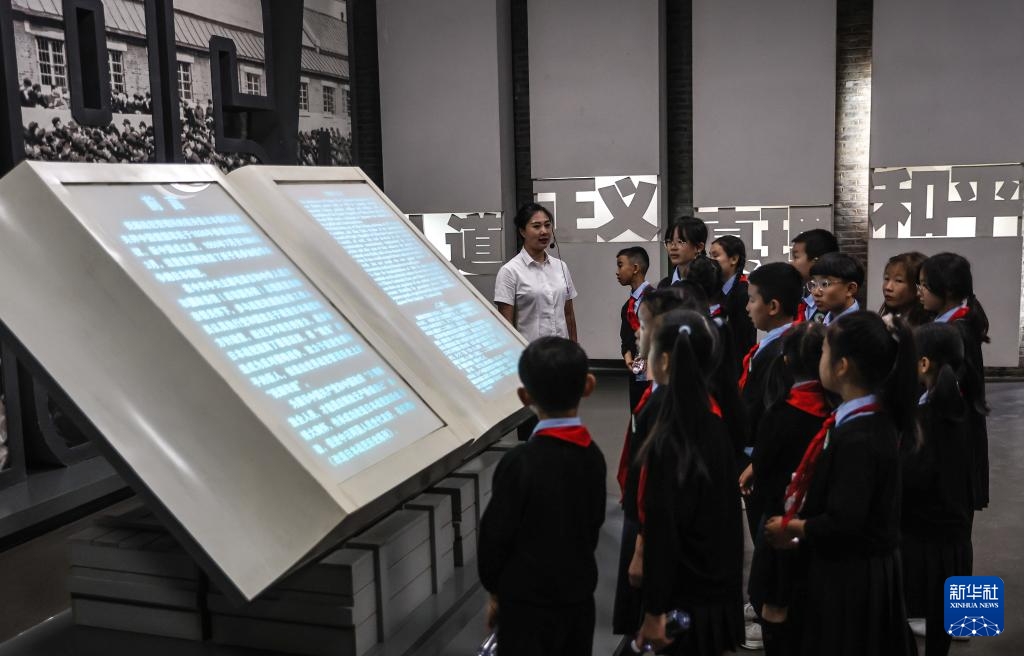 6月10日,抚顺市实验小学学生在抚顺战犯管理所旧址陈列馆内参观。新华社记者 潘昱龙 摄