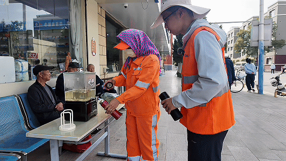 当然,更多人一直关心着他们。我在沿街的药店、银行门前,都看到了免费供给环卫工人们的“爱心茶水”。附近还搭建了一个可供临时休息的小驿站,夏送清凉、冬送温暖。采访当天正逢端午佳节,环卫公司组织着工人们下班后一起包粽子。