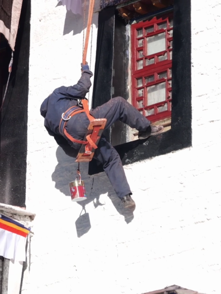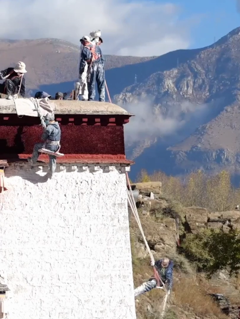 布达拉宫每年进行的墙体粉刷工程被称作“甜蜜换装”;维修科裁缝组负责布达拉宫毛毡、布料等物品的制作与修复;维修科木工组负责布达拉宫木构件的修缮、更换与保养。阳光下,雪域高原各族人民共同守护着这座世界之巅的文化遗产。