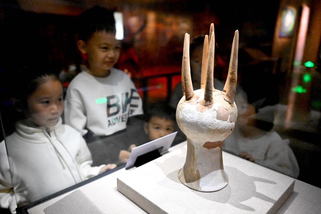 2024年10月6日,小朋友们在亳州市博物馆参观。新华社发(刘勤利 摄)