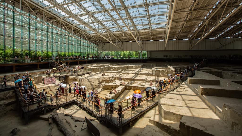 2007年,金沙遗址博物馆在遗址核心区建成,30万平方米的园区内,考古遗迹馆、文物陈列馆,成为人们近距离触摸古老文明的好去处。点缀园林的鹿苑、玉石路、乌木林等,与文化遗产共生,再现“呦呦鹿鸣”的古蜀生态。而今,这座建在城区内的国家考古遗址公园、国家一级博物馆已成为最受市民和游客欢迎的博物馆之一。