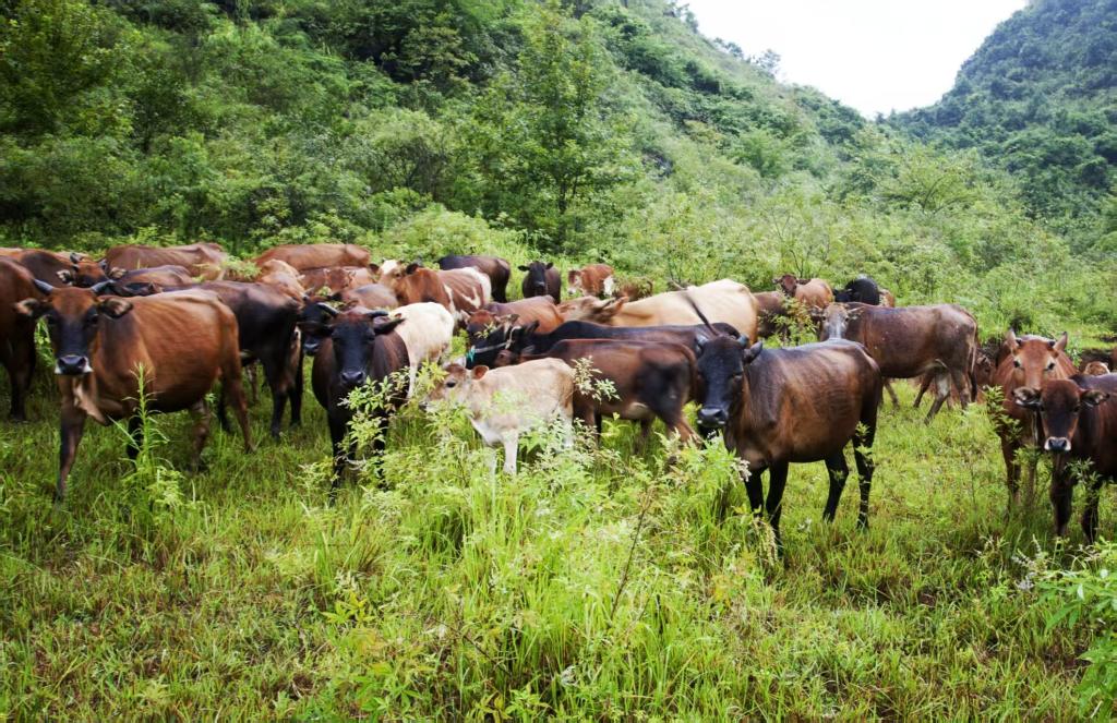 下南乡作为典型的石山地区,季节性缺水、耕地稀少曾长期困扰当地农业发展,但优质牧草却在这里的山水间生长,种草养牛成为了当地村民的致富路。现在,环江香牛特色产业分布遍及环江县12个乡镇。