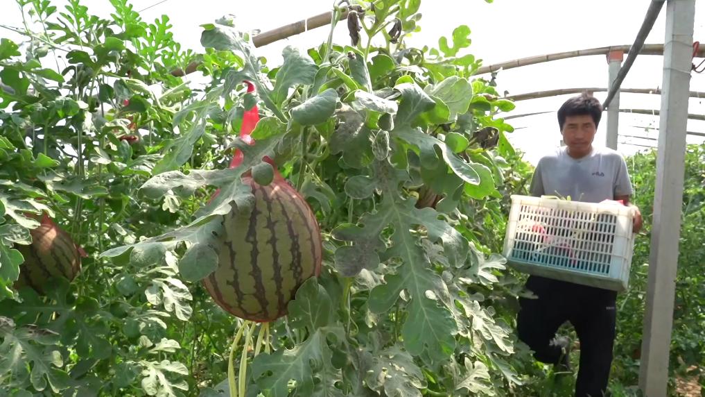 在观寨镇南哈口村,3300亩果蔬大棚连成一片,村民们忙碌着采摘、育苗、售卖。