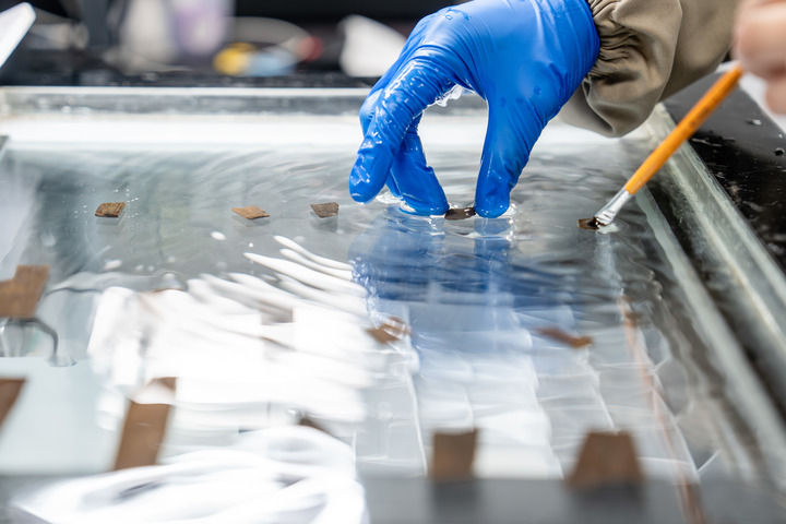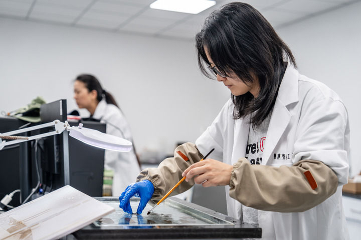 云南省文物考古研究所工作人员在清理木简(2025年4月24日摄)。新华社记者 胡超 摄