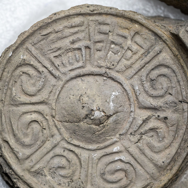 云南省昆明市晋宁区河泊所遗址出土的“益州”铭文瓦当(2025年4月24日摄)。新华社记者 胡超 摄