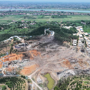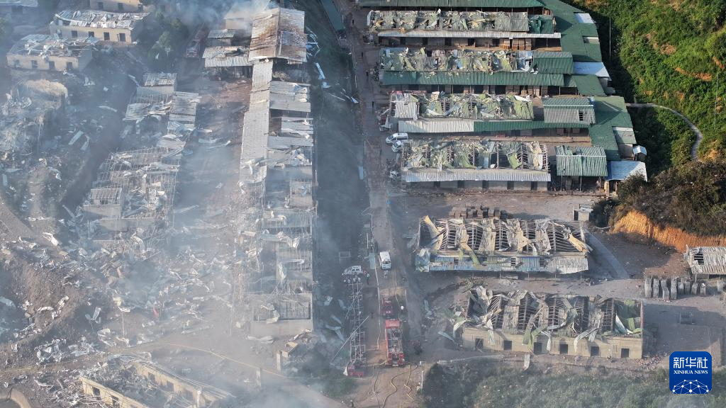 这是6月17日拍摄的烟花厂爆炸现场(无人机照片)。新华社记者 陈振海 摄