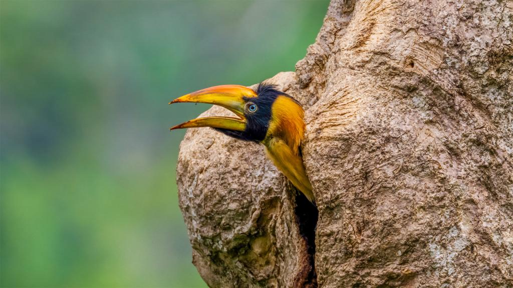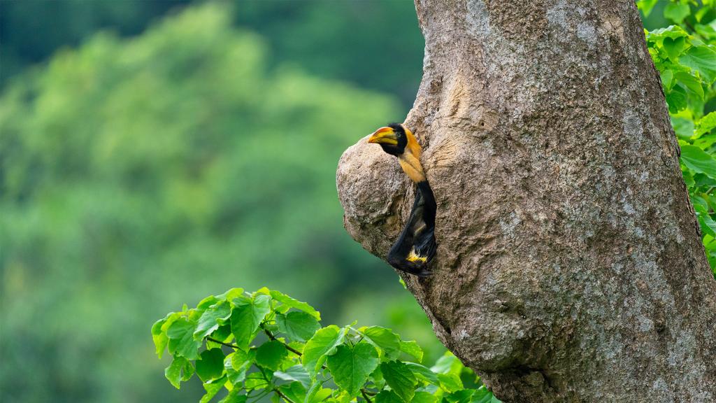 据了解,2025年该区域共有28窝犀鸟入巢繁殖,这是今年首只出巢的犀鸟宝宝。