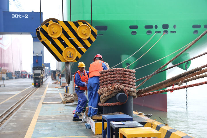 81公里长江金腰带轻挽40公里深水岸线,让“扬州造”钢铁鲸群加速出海,不断拉近与世界的距离。2024年,扬州港口外贸吞吐量近1500万吨,集装箱吞吐量超80万标箱。