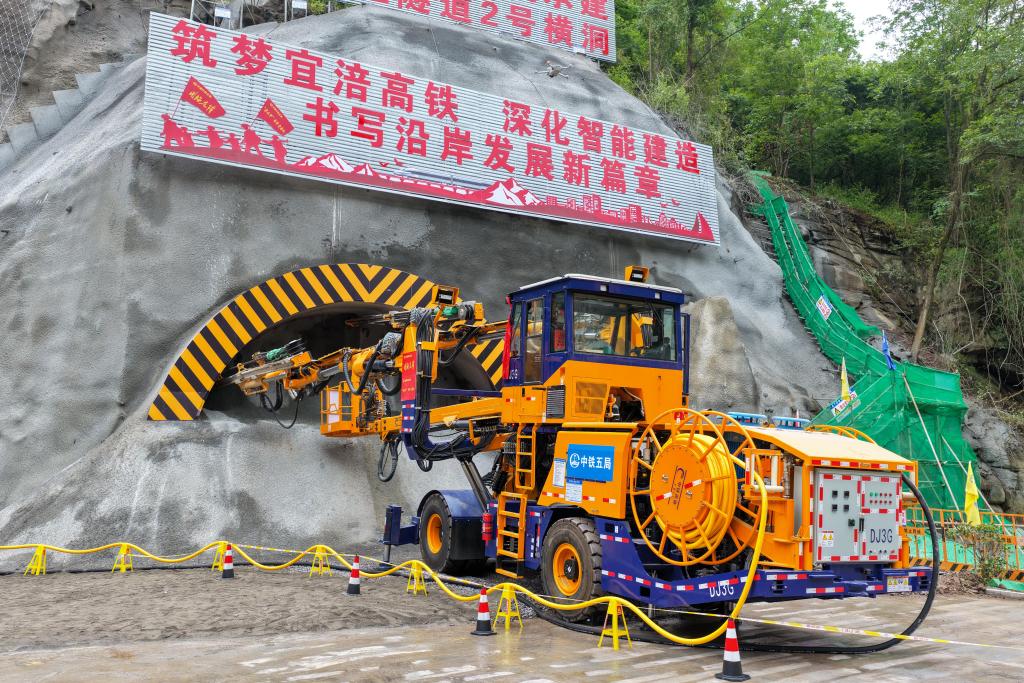 据中铁五局宜涪高铁项目经理王满谷介绍,项目团队成立开工标准化专班,创新采用全工序机械化智能施工体系,采用先进的机械化配套工艺,引入三臂凿岩台车、自行式液压拱架台车、锚注一体机及混凝土喷浆机等智能装备集群,形成全流程机械化作业链,通过“智能化装备+数字化管理+生态化标准”三位一体模式,实现隧道掘进作业新突破。目前,3台套大型设备已经完成调试工作,这些设备组成的隧道机械化施工队功效将比传统人工工艺提升4至6倍,安全质量更加稳定可靠。