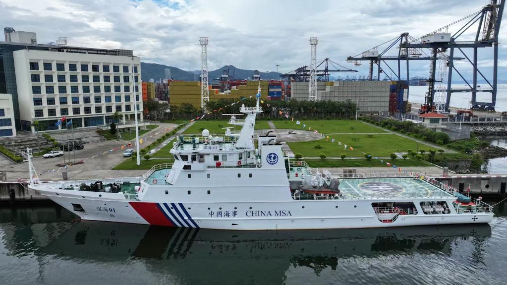 6月25日,停泊在深圳盐田港海事基地的“深海01”轮早早挂上满旗。(深圳海事局供图)