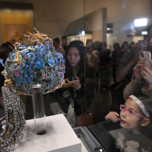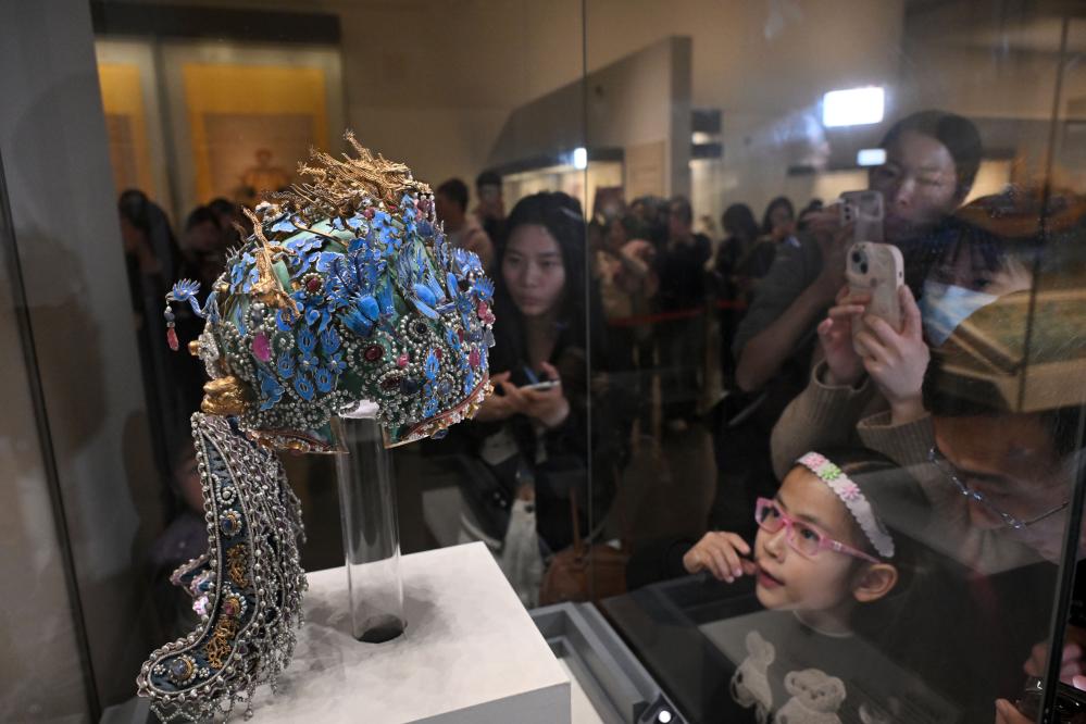 3月25日,观众在中国国家博物馆观看明孝端皇后凤冠。新华社记者 金良快 摄