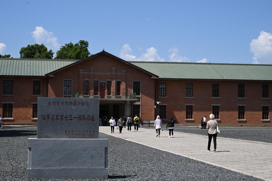 人们前往侵华日军第七三一部队本部主楼旧址参观。新华社记者 姜思妮 摄