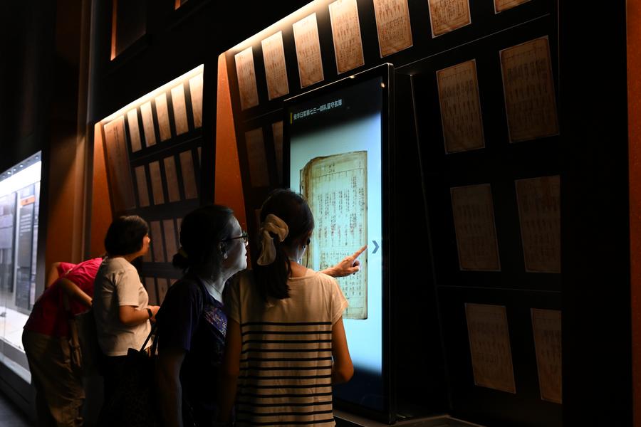 人们驻足观看侵华日军第七三一部队留守名簿。新华社记者 姜思妮 摄