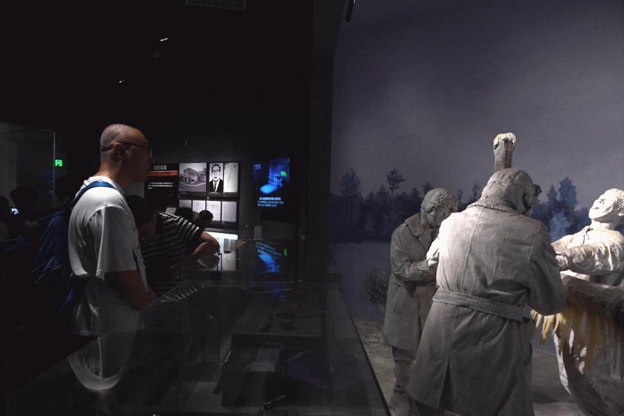 人们走过侵华日军第七三一部队罪证陈列馆的“证言墙”通道。新华社记者 姜思妮 摄