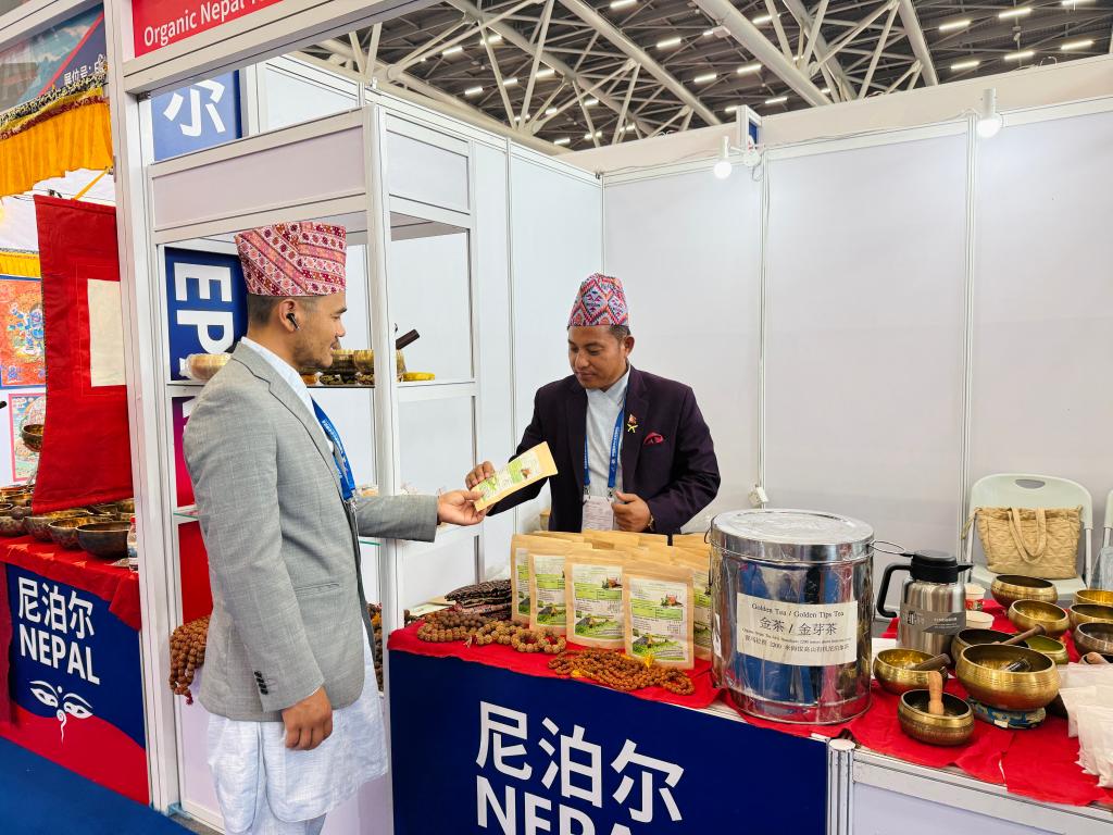 尼泊尔展区一款生长在喜马拉雅山海拔2200米的高山金茶吸引了不少消费者驻足。“希望这款产品能够在中国找到市场。”尼泊尔有机茶业有限公司总经理凯伦·古隆说,中国是尼泊尔的好邻居,这次尼泊尔企业带来了纺织服装、毛毡等产品。据了解,尼泊尔已连续6年参展。