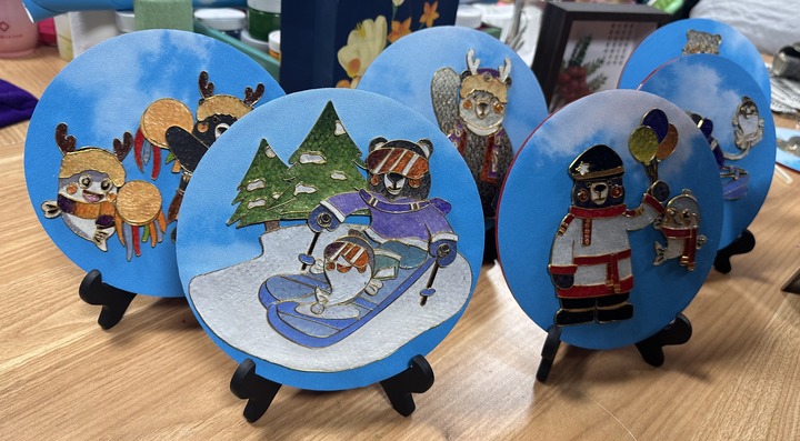 王桂荣和学员制作的鱼皮画伴手礼。新华社记者戴锦镕 摄
