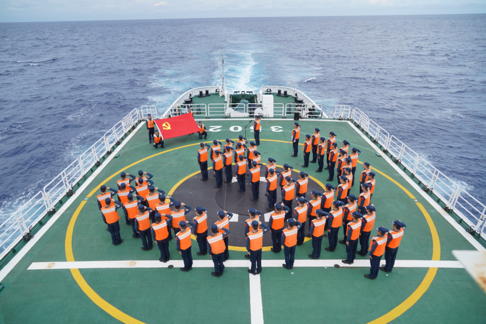 6月28日,中国共产党成立104周年之际,位于我国黄岩岛附近海域,执行常态化巡航任务的中国海警黄岩舰全体党员举行主题党日活动。栗宇嵩等长期在祖国海疆锻炼成长的海警执法员们光荣加入中国共产党。