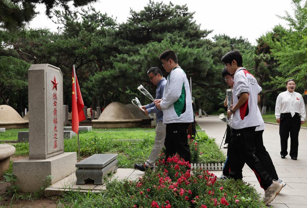 7月2日,香港培侨中学的师生走进沈阳抗美援朝烈士陵园,缅怀英雄。新华社记者 李钢 摄
