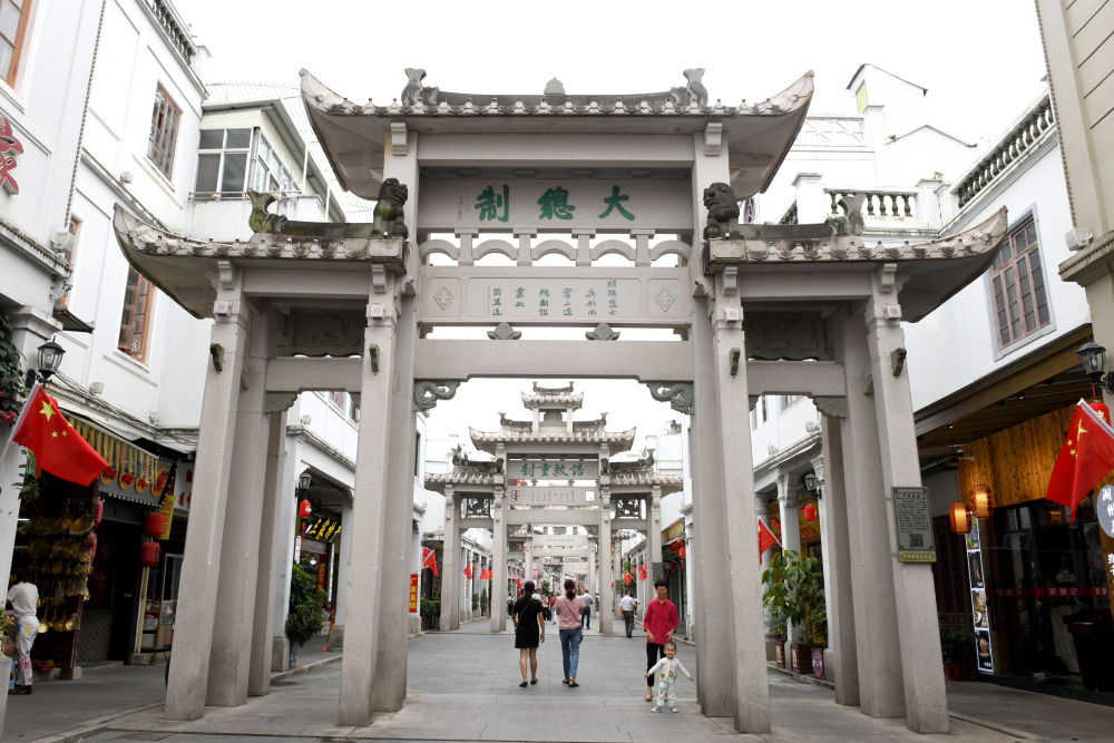 以牌坊街为文化地标的潮州古城至今保持着“外曲内方,四横三纵”的宋代时街区格局。23座古牌坊连接起51条古街巷,商铺林立,古色古香。