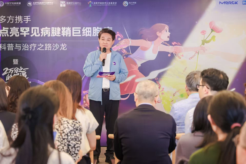 中国罕见病联盟执行理事长李林康在“多方携手:点亮罕见病TGCT科普与治疗之路”沙龙活动现场分享。(中国罕见病联盟供图)