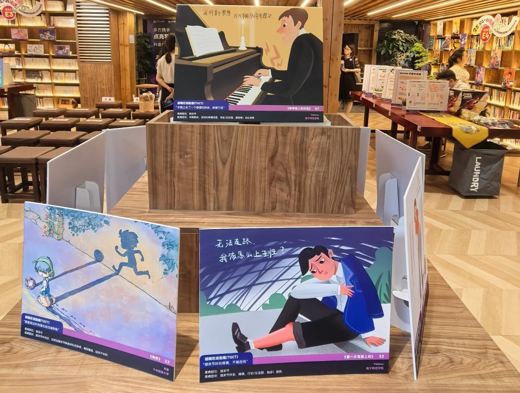 “2万分之一的偶遇——罕见病腱鞘巨细胞瘤(TGCT)公益科普画展”现场。新华社记者李恒 摄