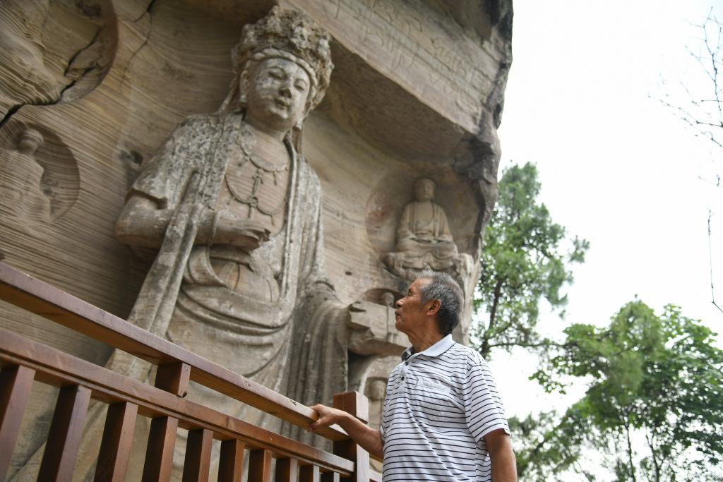 近年来,越来越多的人访茗山寺,曾祥余偶尔会客串“解说员”,给游客们讲述茗山寺和石窟的历史故事。“现在网络太发达了,茗山寺也变得热闹起来。”他表示,自己的心愿就是守护好这些石窟造像,把先辈留下来的遗产好好传承给下一代。