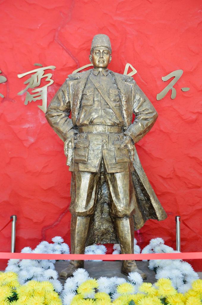这是7月10日在山东省聊城市莘县马本斋烈士陵园拍摄的马本斋烈士雕像。 新华社记者 崔博文 摄