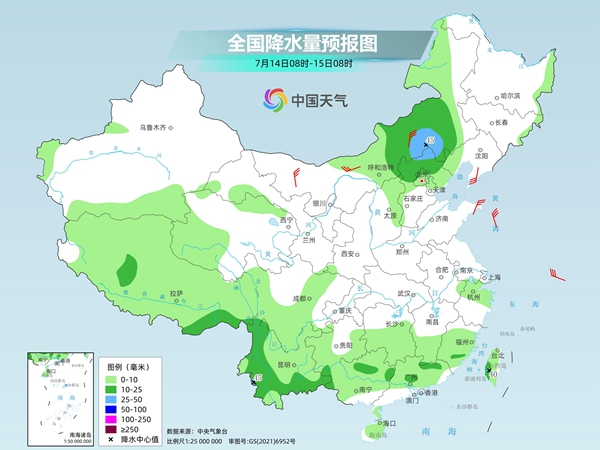 后天,内蒙古中东部、辽宁西部、西藏、青海西部、华北中北部、江南中南部、四川中西部、云南、贵州西部和南部、华南等地部分地区有小到中雨,其中,内蒙古中部、河北北部等地部分地区有大雨。
