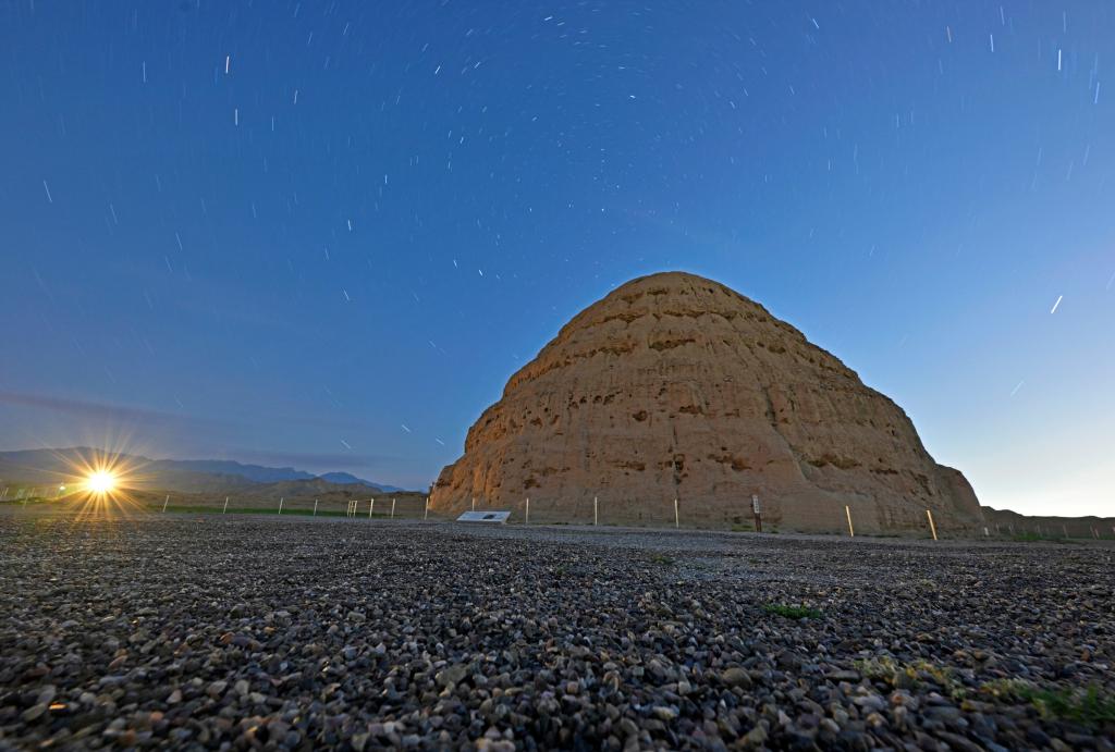 2025年7月10日拍摄的星空下的西夏陵3号陵。新华社记者 王鹏 摄