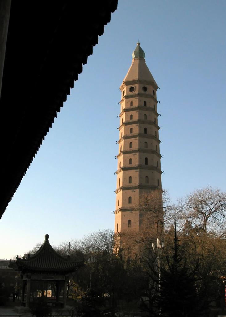 2002年在宁夏银川市城区拍摄的始建于西夏时期的承天寺塔。 新华社记者 王广壮 摄