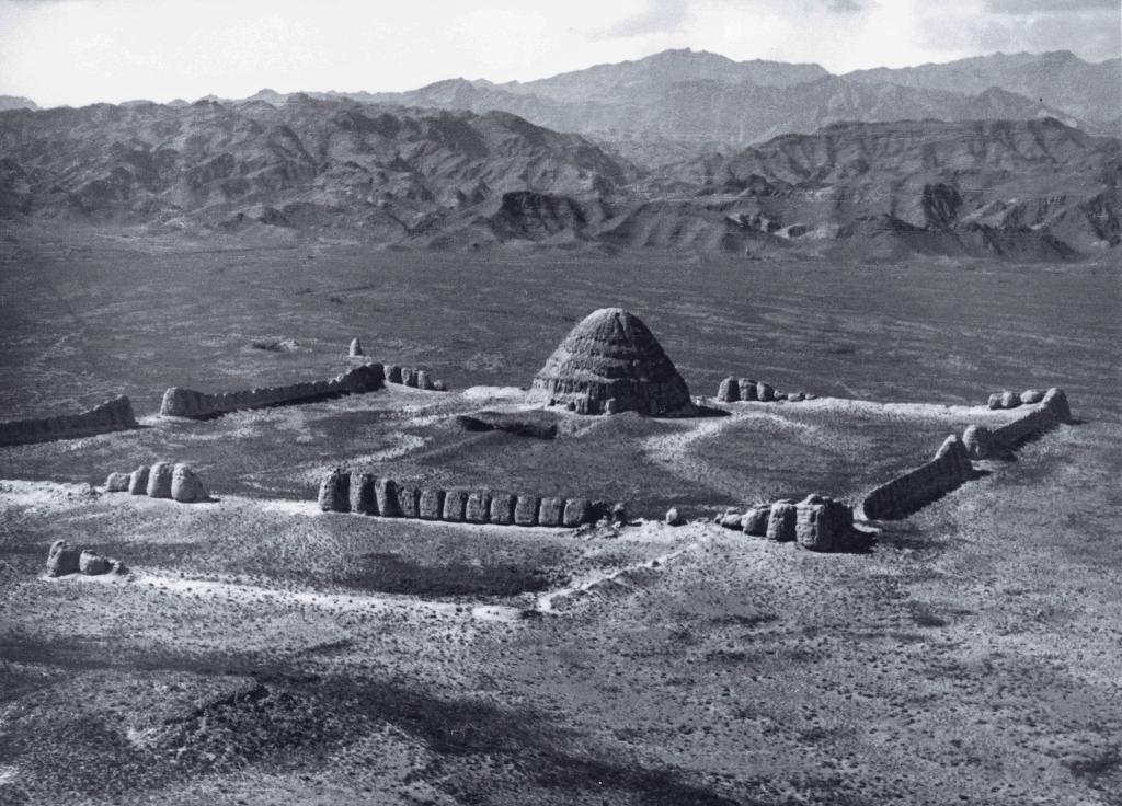 20世纪30年代德国飞行员卡斯特飞越宁夏贺兰山时拍摄的西夏陵3号陵。新华社发