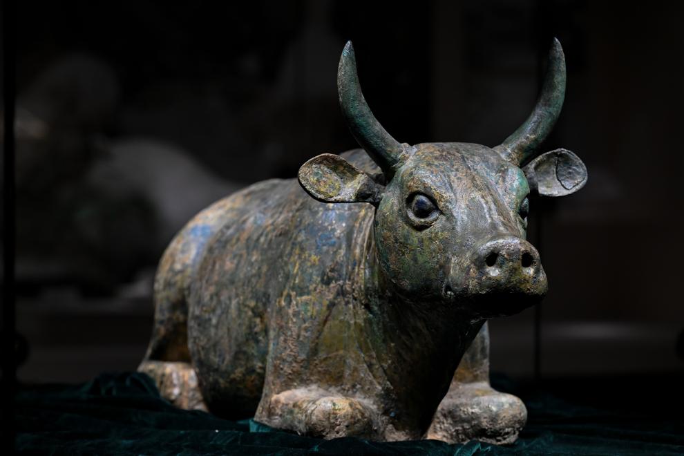 这是在宁夏博物馆展出的“镇馆之宝”鎏金铜牛(2024年11月26日摄)。新华社记者 冯开华 摄