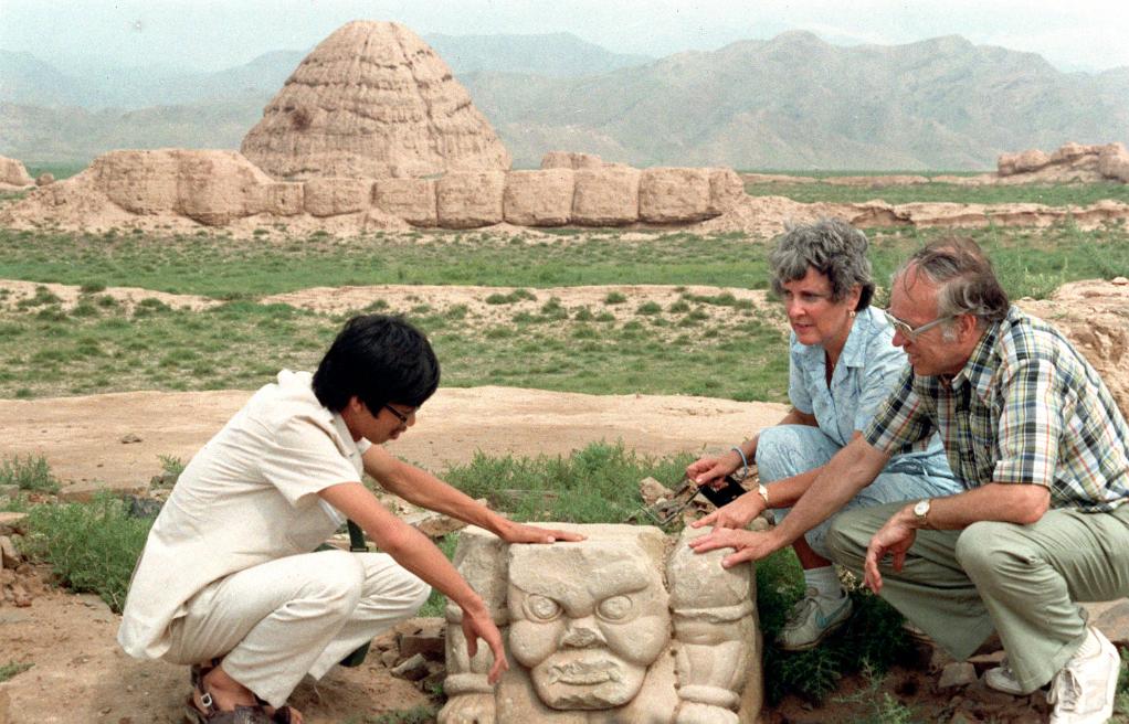 1988年,美国旅游者来到西夏陵,对文物古迹产生了浓厚的兴趣。新华社记者 王辉 摄