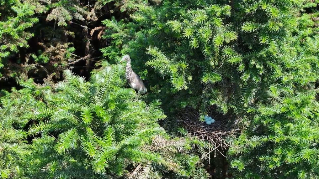 自六月中旬开始,这对池鹭“夫妇”开始孵化接力。无论烈日炙烤还是骤雨突袭,它们始终将蛋牢牢护在身下,只偶尔调整姿势或短暂离巢觅食。这些天,工作人员用无人机等专业设备对池鹭的孵化过程进行了实时监测。