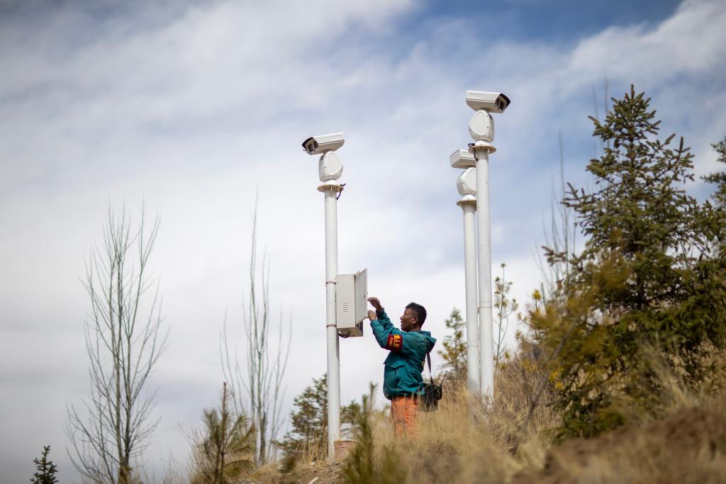 扎西曲培在南山公园检修消防监控装置。新华社记者 姜帆 摄