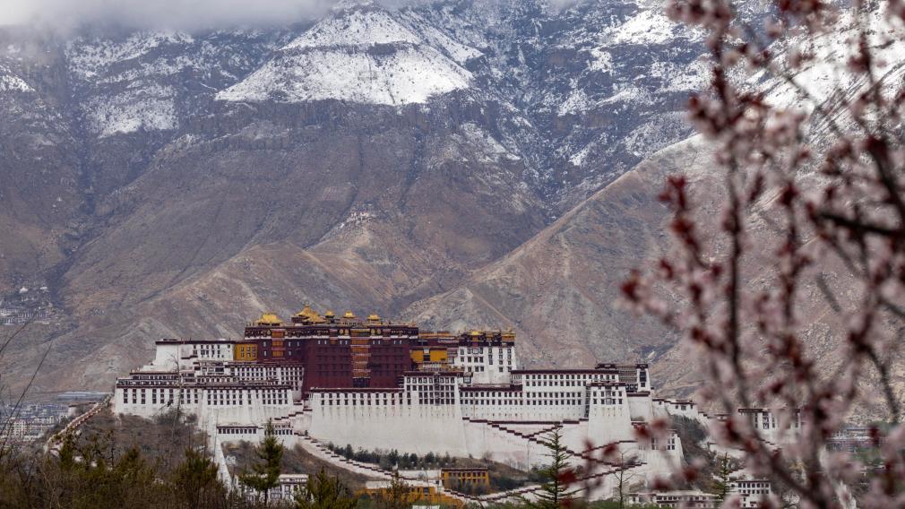 从南山公园方向眺望布达拉宫。新华社记者 姜帆 4月15日摄