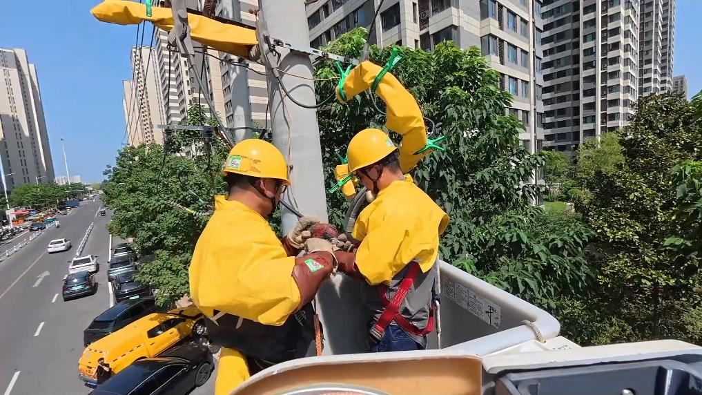班组成员告诉记者,持续高温天气下,居民家中的空调、电扇连轴运转,线路设备在高温下面临较大压力,可能随时出现意想不到的问题,只有带电抢修才能保障居民的持续清凉。