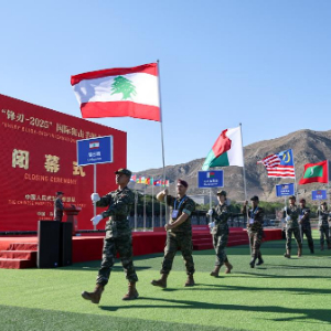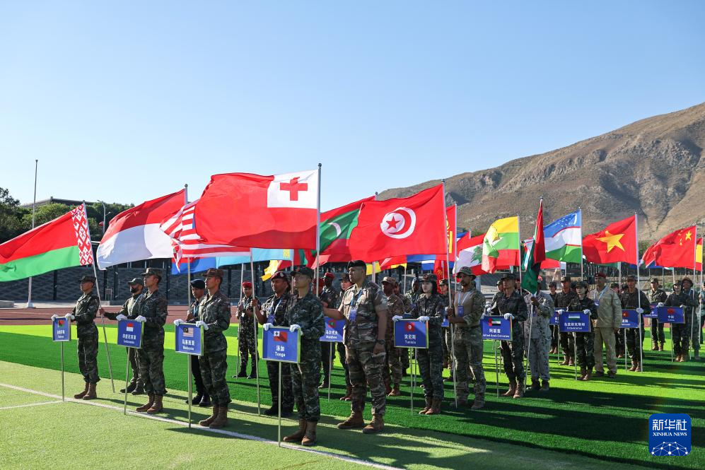 7月19日,“锋刃-2025”国际狙击手射击竞赛在新疆乌鲁木齐武警部队某训练基地落下帷幕。这是各国参赛代表步入会场。新华社发(侯崇慧 摄)