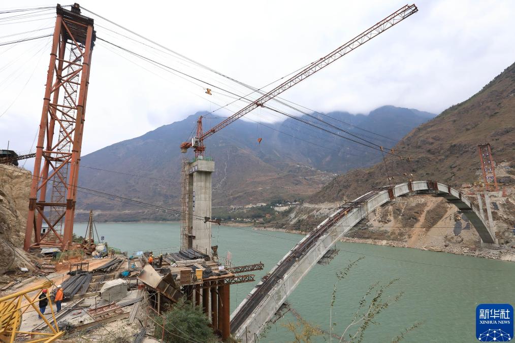金阳对坪金沙江溜索改桥工程主拱已经合龙(2017年12月12日摄)。为改善沿河临水群众的出行条件,四川省近年来全面推进渡改桥和溜索改桥工程,全省渡口数量由2010年底的1951个减少为2017年底的1169个,全省77个溜索改桥项目,除金阳县、布拖县2座跨金沙江特大桥和北川县跨唐家山堰塞湖特大桥正在施工外,其余桥梁已全面建成,四川基本告别“溜索时代”。新华社记者江宏景摄
