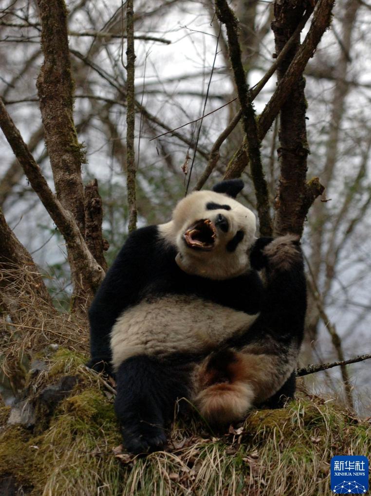 2006年3月21日,卧龙,全球首只进行野化训练的大熊猫“祥祥”在野化训练场中对我发出“怒吼”的样子。